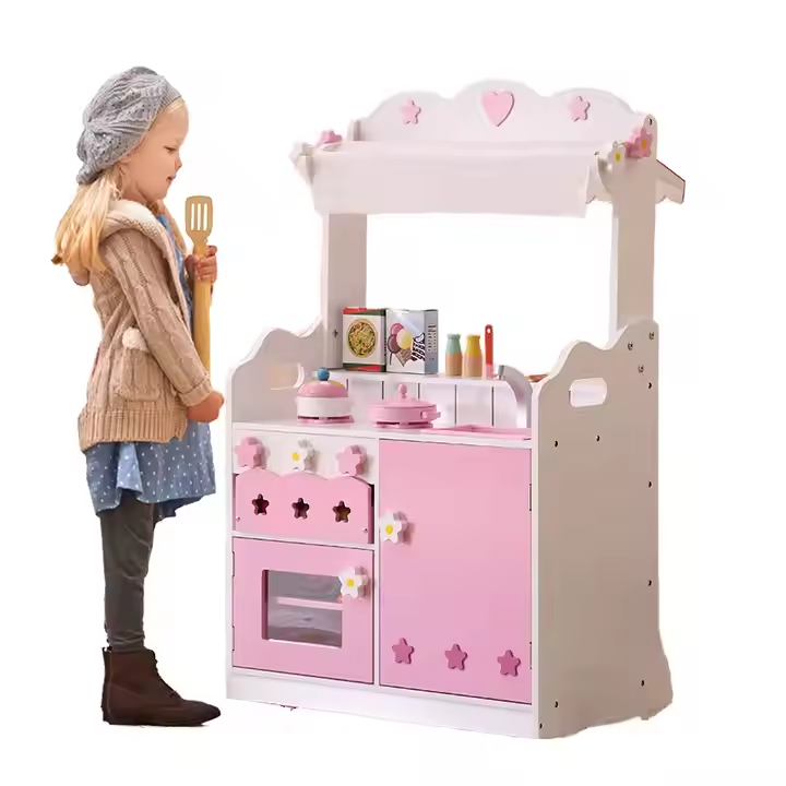 Den dubbla sidosidiga köksleksaken, storlek på 42,5*60*97 cm, har rika detaljer och gott om utrymme för att tillgodose barns olika matlagningssimuleringsbehov.